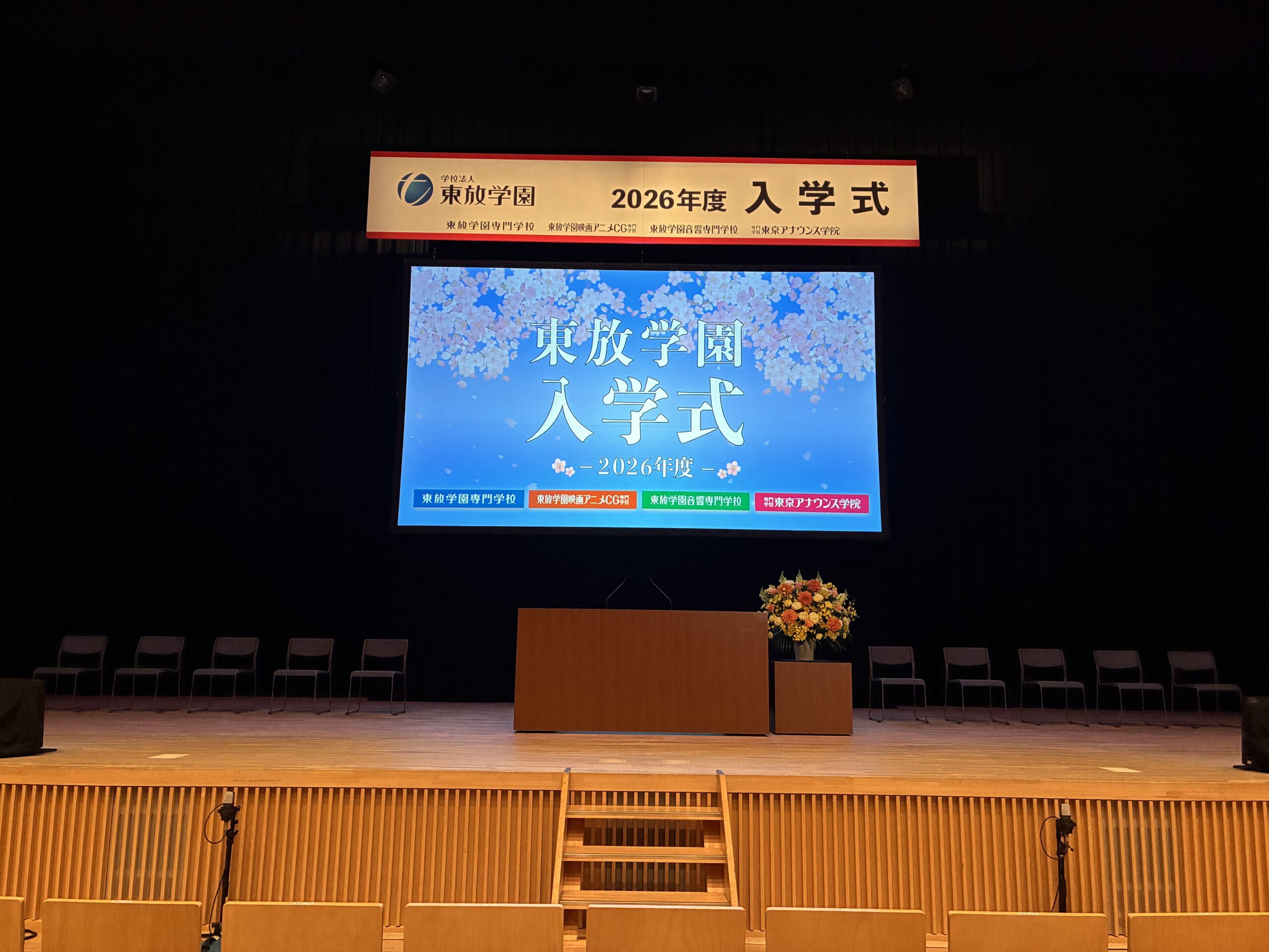 2026年度の東放学園専門学校、東放学園映画アニメCG専門学校、東放学園音響専門学校、専門学校東京アナウンス学院の入学式が、4月3日(金)LINE CUBE SHIBUYA(渋谷公会堂)で、東放学園高等専修学校の入学式が、4月5日(日)東放学園映画アニメCG専門学校 Studio Deeで開催されました。